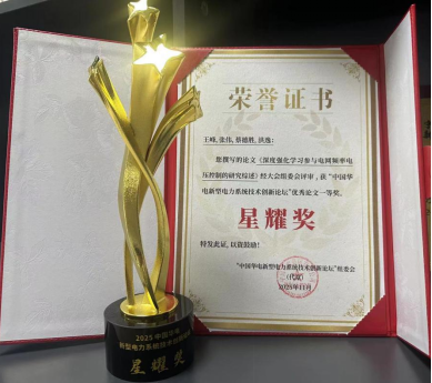 11月4日,在江苏省南京市隆重举办的2025届中国华电新型电力系统技术创新论坛上,丰道电力撰写的《深度强化学习参与电网频率电压控制的研究综述》,经过激烈角逐与权威专家多轮评审,最终从众多优秀成果中脱颖而出,荣获论坛最高论文奖项——“星耀奖”(一等奖)。…